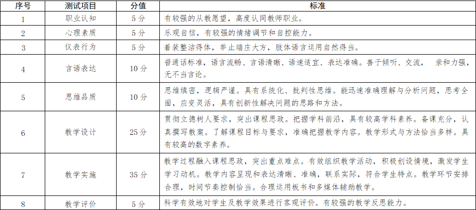 附件:山东省高等学校教师资格考试面试评分标准(试行)
