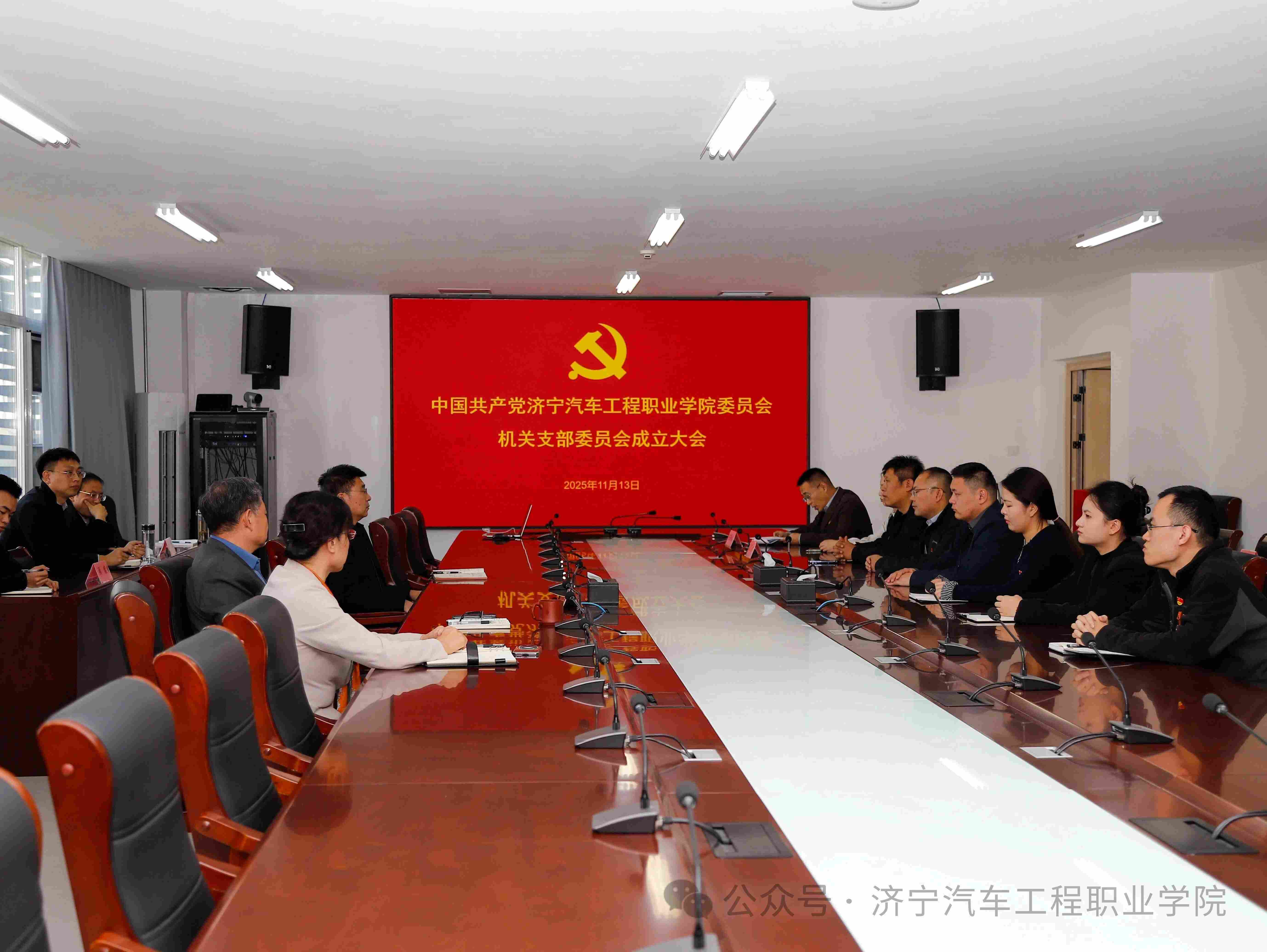 根据《中国共产党章程》《中国共产党支部工作条例(试行)》《中国共产党基层组织选举工作条例》和《中国共产党普通高等学校基层组织工作条例》等文件精神,2025年11月13日,济宁汽车工程职业学院党委机关党支部成立党员大会在行政办公楼310室召开。学院机关11名正式党员全部出席,有关人员列席会议。会议由学院招生就业处负责人孙其锋主持。