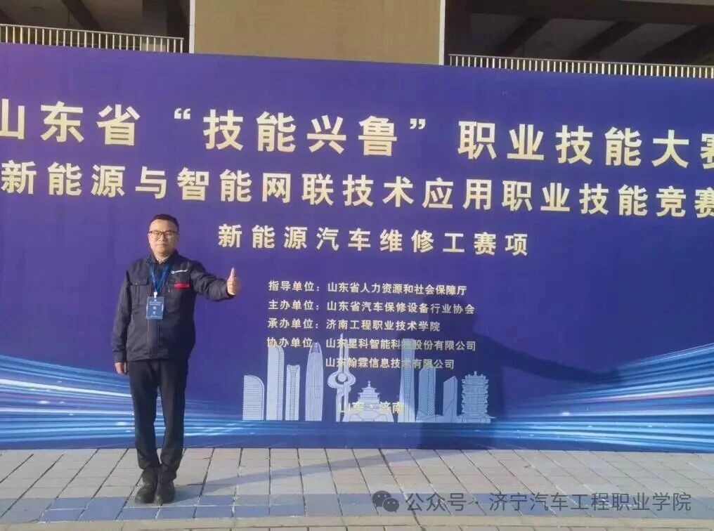 近日,2025 年山东省 “技能兴鲁” 职业技能大赛新能源与智能网联技术应用职业技能竞赛 —— 新能源汽车维修工赛项,在济南工程职业技术学院圆满落幕。我校新能源汽车专业教师王化荣首次征战该项重点赛事,便从全省 28 所职业院校、技工院校及企业的 75 名参赛选手中脱颖而出,一举斩获教工组一等奖。