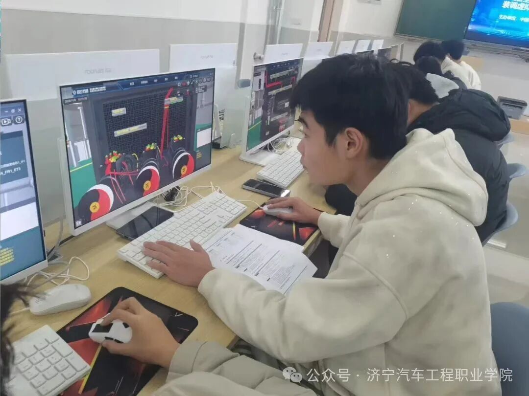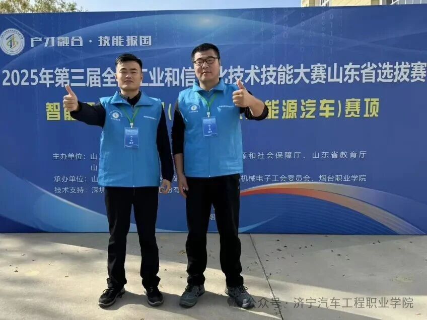 作为省级一类职业技能竞赛,该赛项紧扣山东智能网联新能源汽车产业 “电动化、智能化、网联化” 转型需求,设置理论考核与实操比拼两大环节。备赛阶段,两位老师深入钻研赛事技术要点,紧跟领域前沿趋势;比赛中,二人沉着冷静、配合默契,严格按规范完成设备调试、故障排查与工单填报等任务,以专业职业素养与精准技术呈现,获裁判组高度认可。